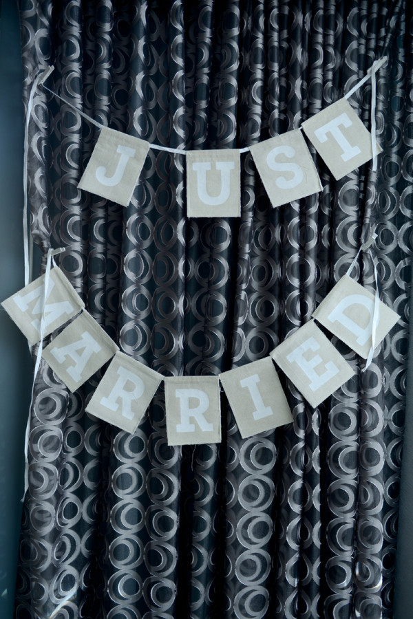 You might also like to set aside a little in your budget for flowers to make it feel special and more like a party. Most floral shops will delivery to major hotels. Bringing a light paper banner or bunting reading “JUST MARRIED” with you to hang off a curtain or above the cake table is a nice touch. Buying or renting an aisle runner also helps the room feel a little more wedding ready. A table with framed photos of you two alongside a guestbook is also a nice touch.