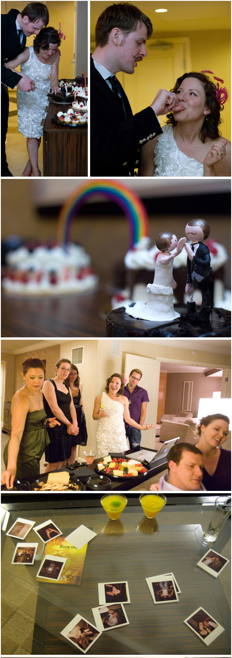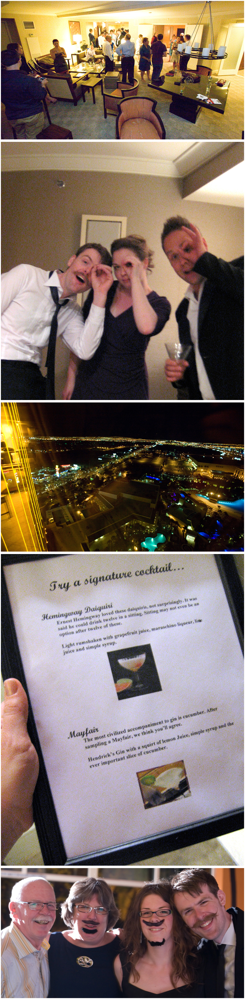 After the reception, the party moved upstairs to a media suite at Mandalay Bay. Mini vegan and regular cakes from Whole Foods were featured at the cake cutting and a bartender helped serve custom cocktails and beer. Moving to a smaller more intimate location and treating ourselves to a quintessential “Vegas” experience of a suite party with a bartender and late night snacks and cake was amazing. And because it was all self catered instead of done via the hotel, it was surprisingly affordable. We felt like rock stars, if only for one night.