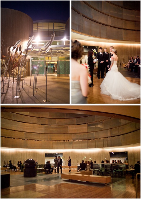 Katie and Ryan were wed at the Springs Preserve, in the gorgeous Origen room. The lighting and wood provide a certain warmth. It’s one of my favourite venues at the Springs Preserve. The freestanding vases of callas from Enchanted Florist were a beautiful choice – they just seem to float in the room.