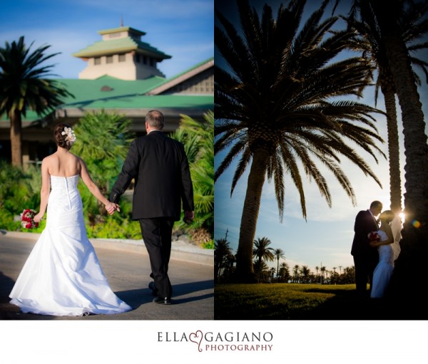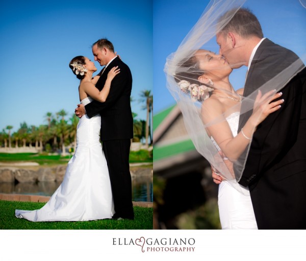 This wedding shot by Ella Gagiano at Bali Hai Golf Club in Las Vegas has such a tropical dreaminess to it. The palm trees, the rich greens, the flowers in the bride’s hair – it’s enough to get you dreaming about Hawai’i or Tahiti or the beaches of southern Thailand…