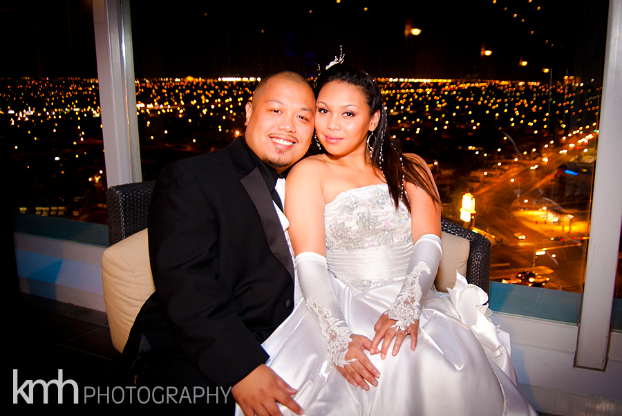 Then the party got going at One Six Sky Lounge at the Eastside Cannery hotel. As Kristen wrote on her blog: “If you haven’t been to the One Six Lounge, it’s got a nightclub feel, with a huge dancefloor, colored spotlights, glass window walls, a fully stocked bar and a giant patio with an incredible view. This is the perfect location for couples who want to have a large space for their friends and family to party the night away.” And it definitely looked that way!