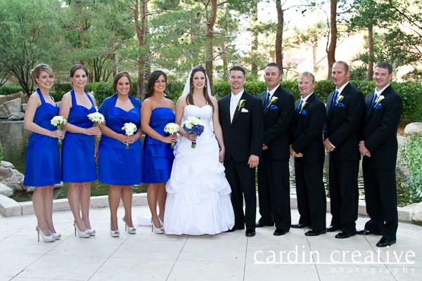 There are some colors that just pop in wedding photos – and one of them is deep indigo blue. Need proof? Check out these amazing photos by Chelsy Cardin of this wedding at the JW Marriott in Summerlin. Katherine and Jon chose a deep hue of blue to pull their event together, and it looks great.