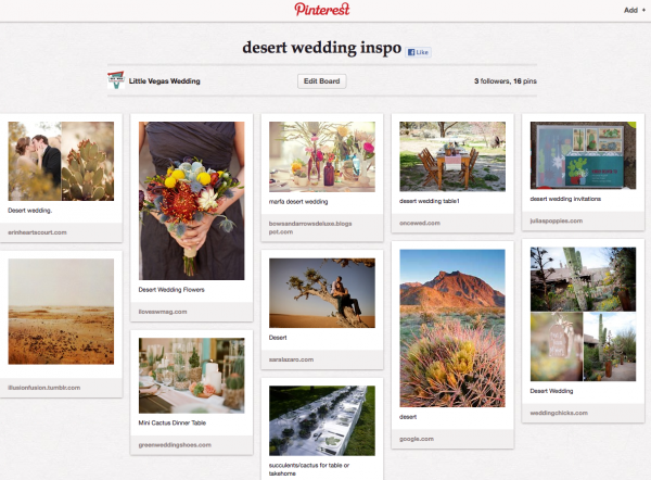 I feel like I’m (fashionably) late to the party, but I was really going to town on Pinterest this morning after joining a few weeks ago. I’ve got a few different boards up, featuring cocktail ideas for in suite receptions, fancy fonts you might like to use for extra Vegas vibe on your wedding stationery and some images that evoke that desert feeling.