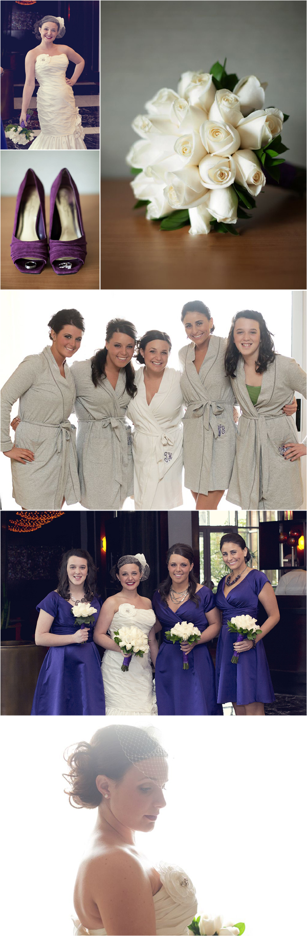 Today’s wedding was shot by Cindy and Amy of Mad Love Weddings and took place at the Platinum Hotel with a dazzling view of the Strip. The royal purple touches were gorgeous, and I LOVE the idea of monogrammed bathrobes for the bridal party.