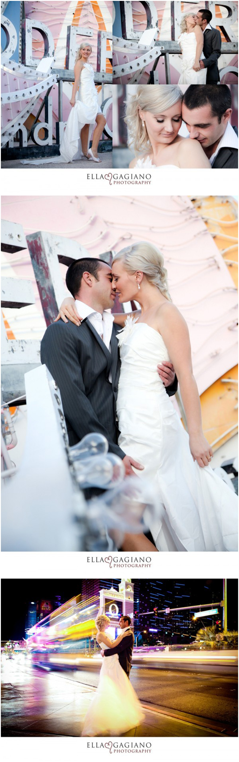 Although I am very happy with how my wedding turned out (missing pants and hairstylists and all) sometimes I just see something that makes me go “I want a do-over!” Today’s shoot from Ella Gagiano made me do just that. This couple eloped in Vegas all the way from New Zealand. I’m so happy they got such stunning photos to show off after the event.