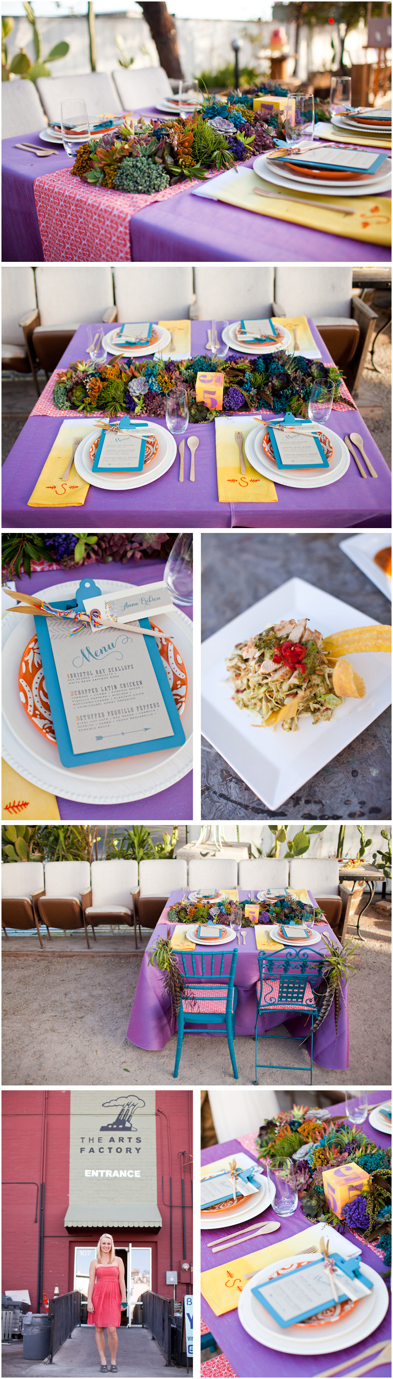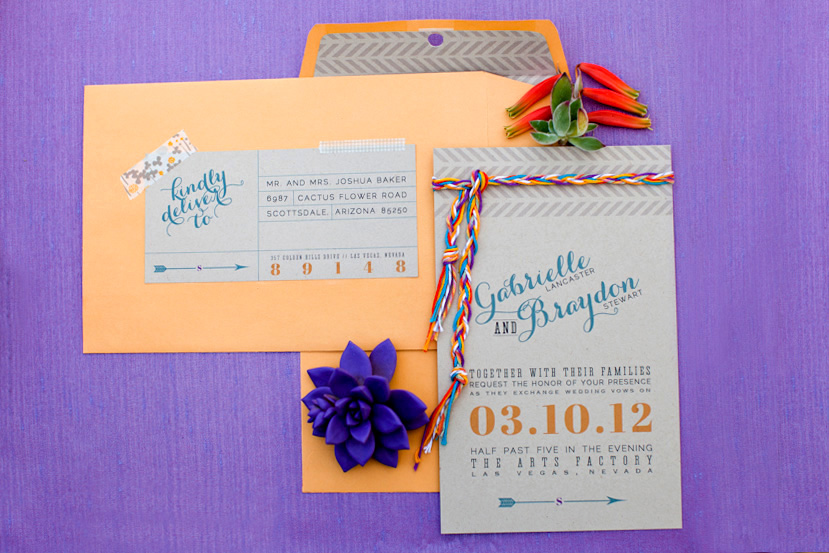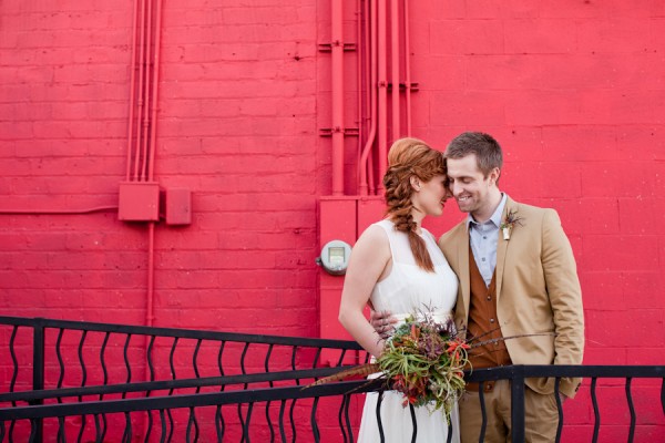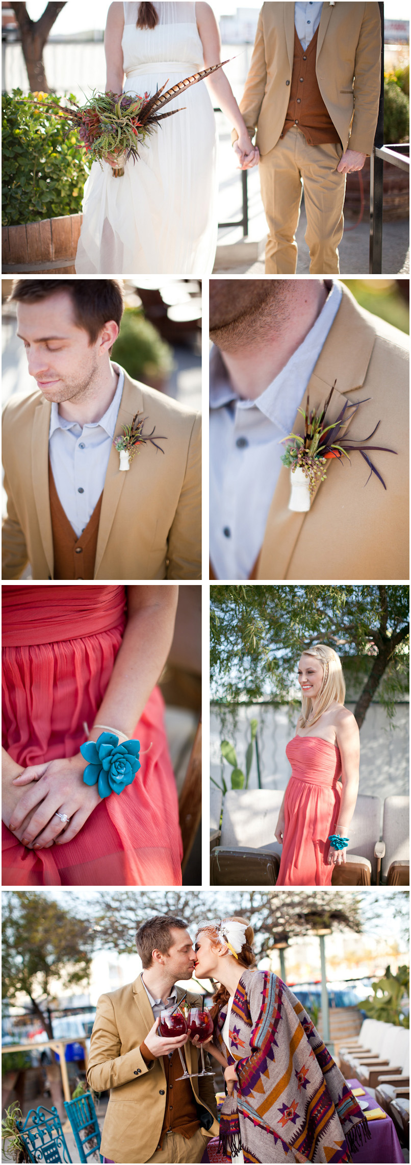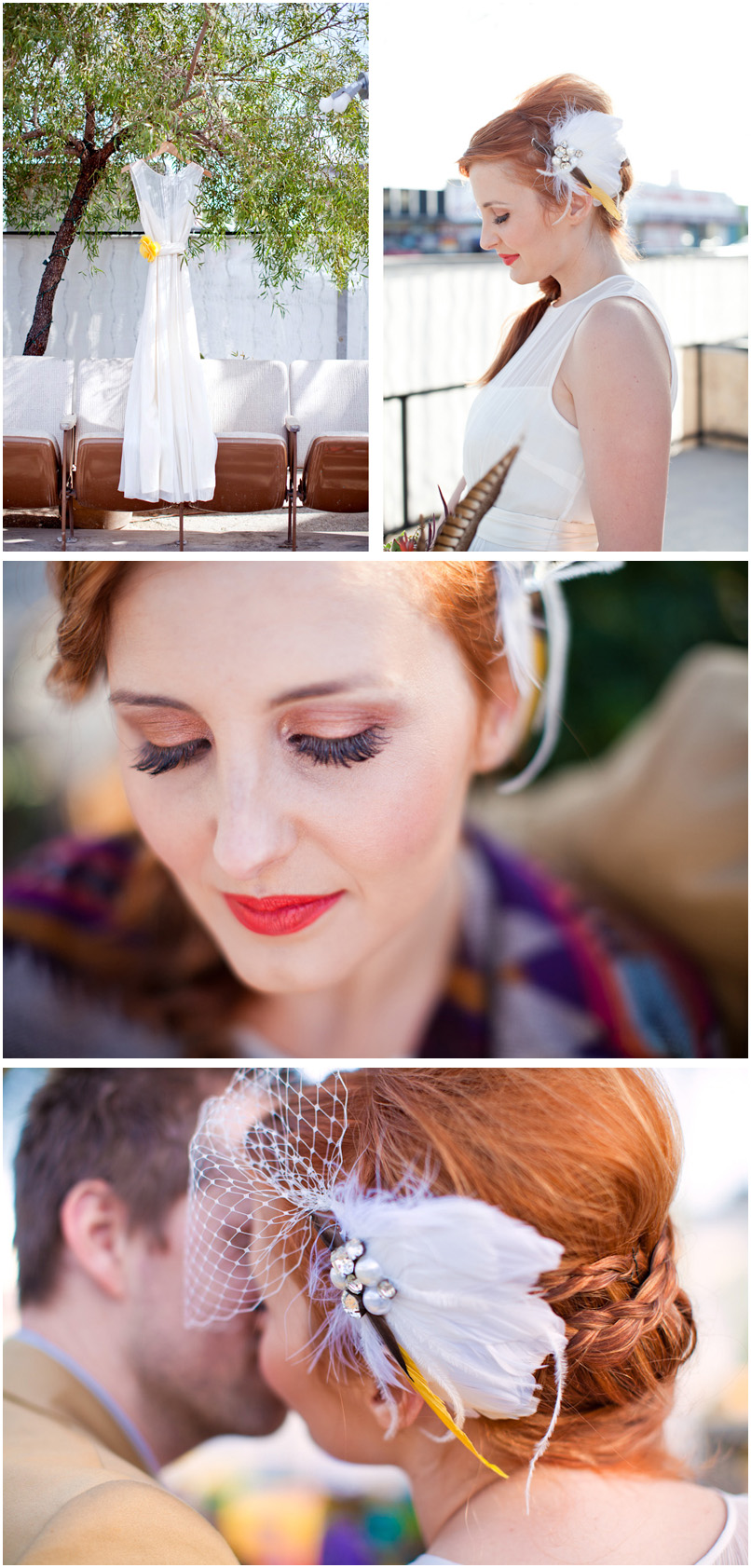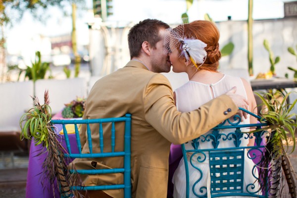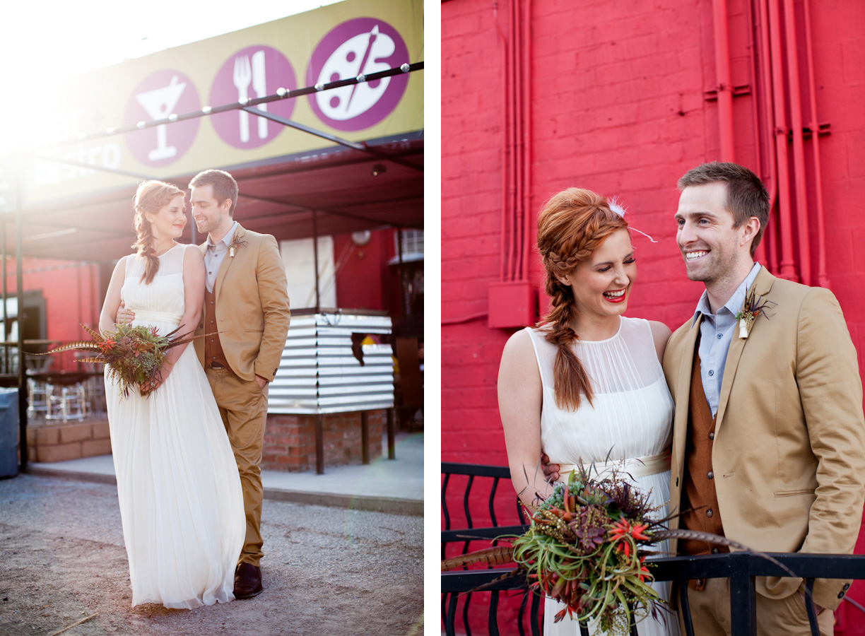 I am so in love with this wedding inspiration shoot! The idea, styling and photos come from MegRuth. Featuring feathers, ombre and succulents, this is a very on trend wedding concept, I think. And it even uses a super trendy, up-and-coming area of Vegas as the location – the Arts District, downtown.
