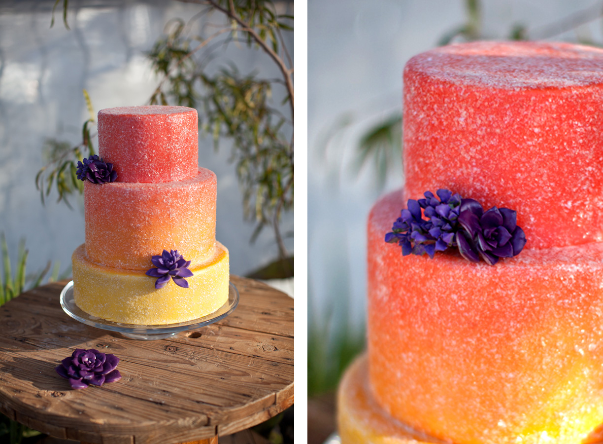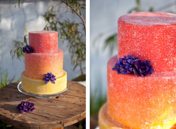 I am obsessed with ombre and dip dying to begin with, so I went nuts when I saw this cake. It’s a desert sunset cake by Gimme Some Sugar.