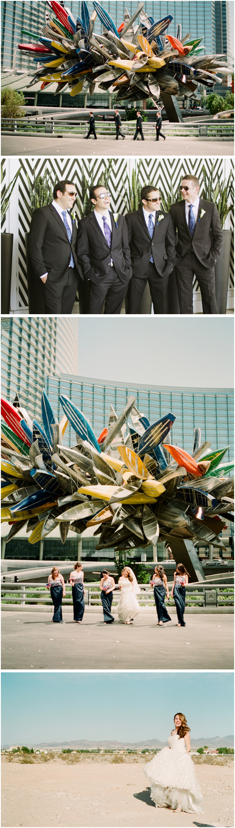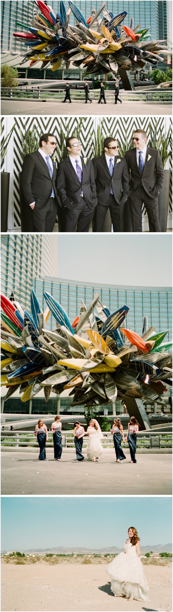 This wedding took place at the now defunct Vitruvian by Griffin Mansions, but that does not make the photos any less stunning. The bridal party got ready and did some pre-wedding photos around CityCenter and Vdara. I love the inclusion of the fantastic public art the property has. And how about those Choo wedding shoes? Gorgeous.