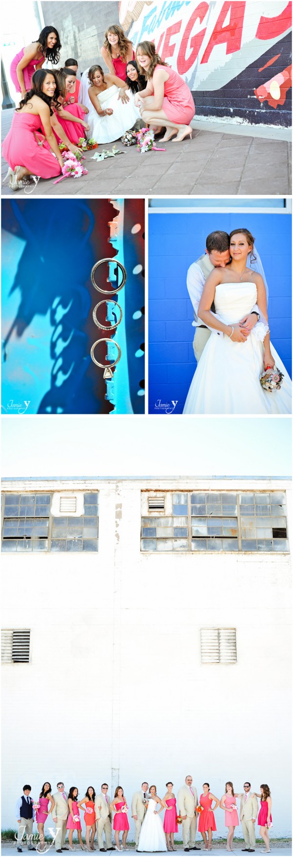 We had some time before their reception started at the amazing Eiffel Tower restaurant so we took the bridal party and headed downtown to the Arts District for some fun non-traditional settings for their portraits.