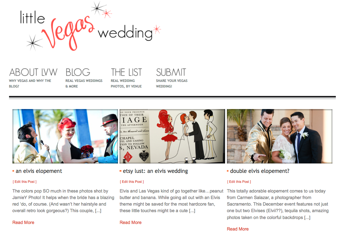 I just wanted to highlight that as I’ve added weddings to the blog, this has helped flesh out the venue list a bit more as well. By accessing “The List” on the navigation bar up at the top there, or browsing venues on the sidebar, over there to the right you can easily see real Las Vegas weddings organized by venue, quickly and simply.