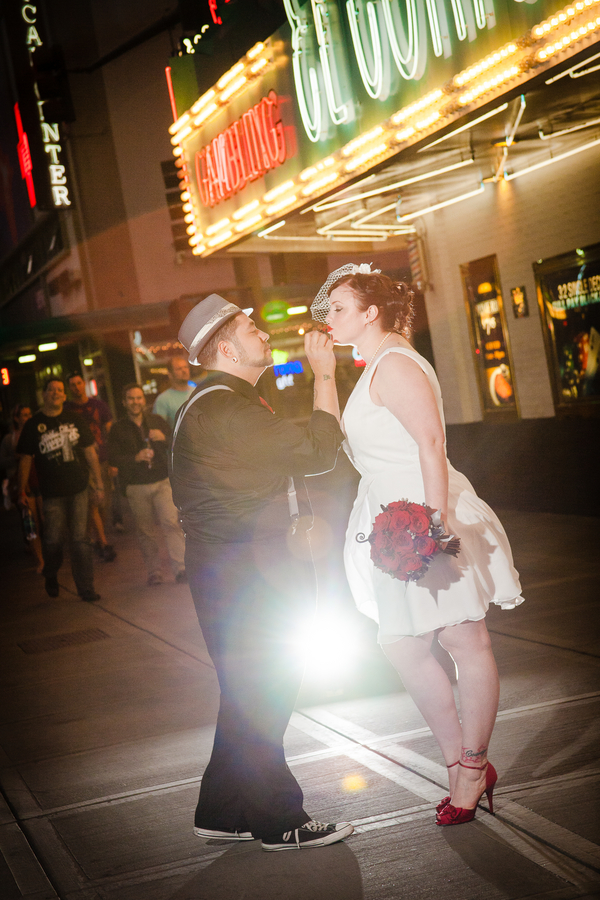 Today’s wedding is a completely pin-upified, retro inspired elopement shot by Josh & Jen Photography back in October. Tara and Tim are a local couple that met through mutual friends and spent their first date together dancing at Revolver Saloon. A year after they met, they were married!
