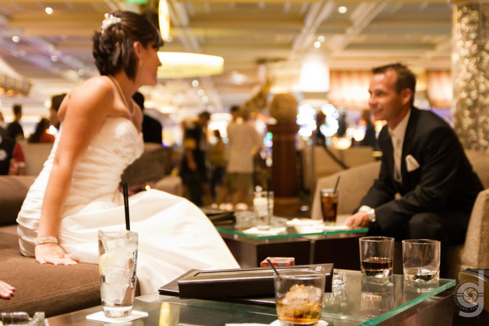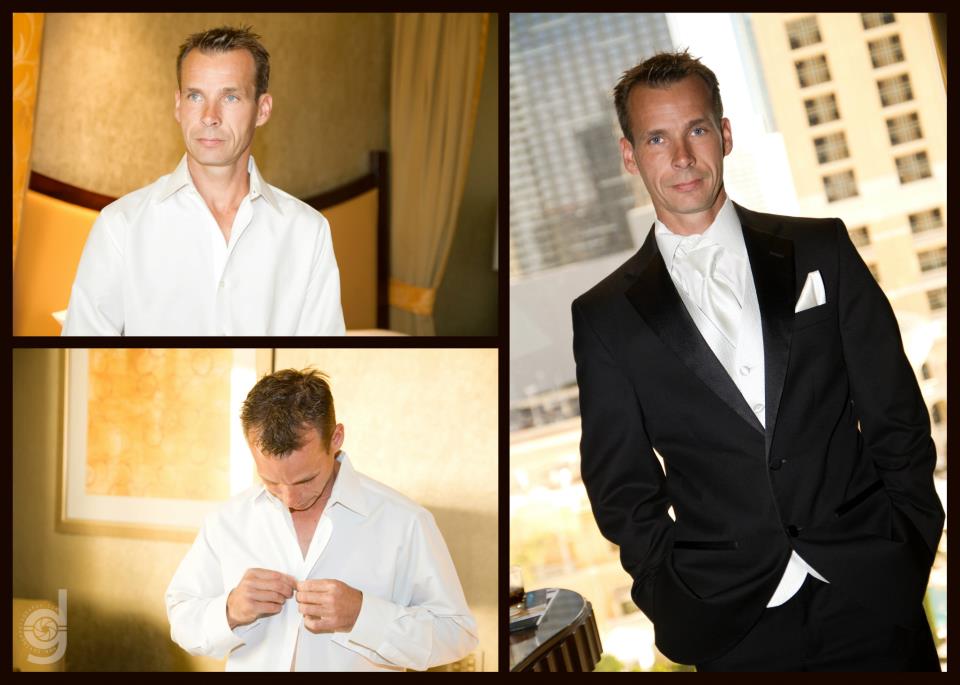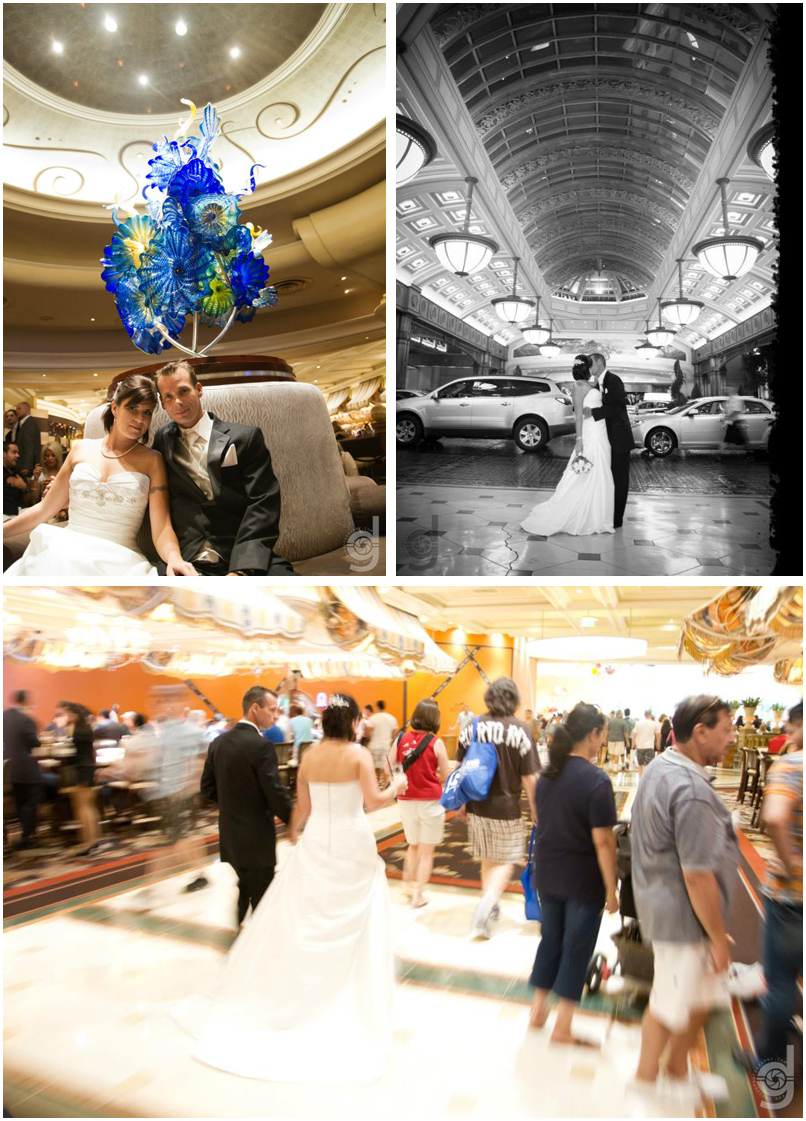 Since the couple was staying at the Bellagio, Davin captured some really gorgeous portraits in and around the property including the stunningly framed aerial shot above, and photos as they got ready, below. Davin said it was his first visit to Las Vegas, and thought it was a great introduction to the city, from Samantha and Kevin’s wedding.