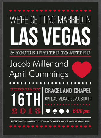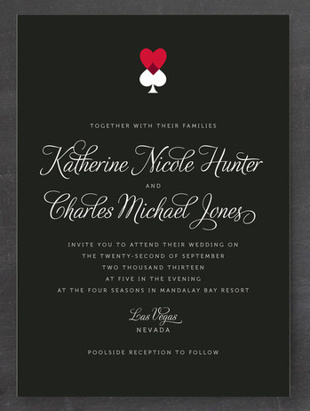 Vegas Type highlights a trend in wedding invitations – mixed font sizes – with playing card suits.