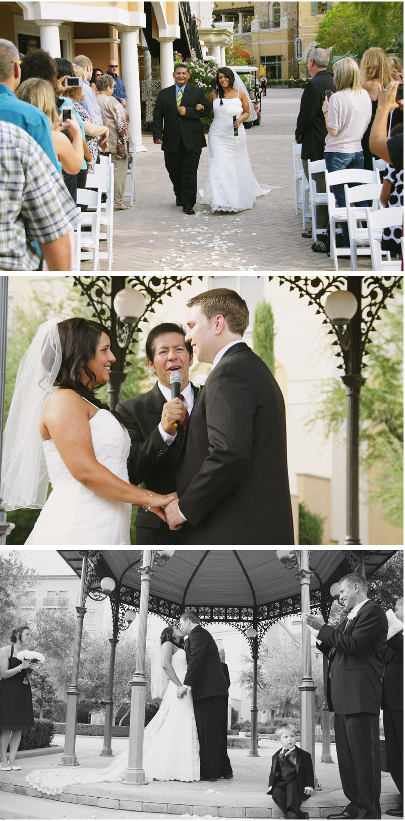 Wedding Venue: Aston MonteLago Village Resort at Lake Las Vegas Courtyard Gazebo / Reception Venue: Aston MonteLago Village Resort at Lake Las Vegas Riva di Lago hall / Photographer: Gaby J Photography / Wedding Planner:  Joni Moss at LV Wedding Connection / Wedding Dress:  Alfred Angelo / Hair + Makeup: Brittanie Rabenold / Floral:  Joni Moss at LV Wedding Connection / Catering: DiVine Events / Cake: Cake Designs Las Vegas
