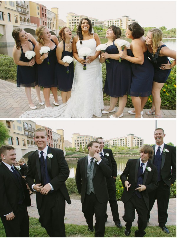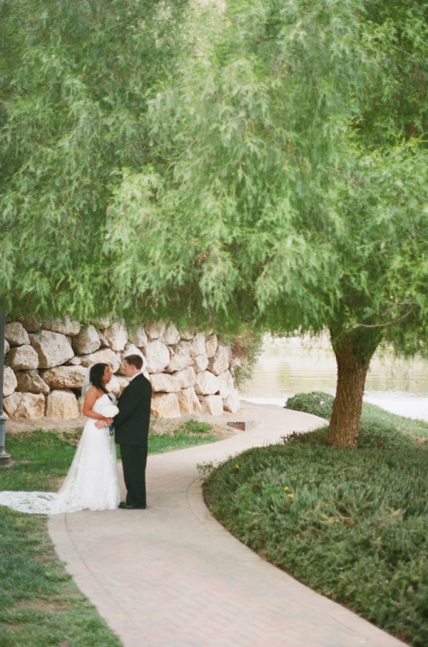 The ceremony was held under the gorgeously intricate outdoor courtyard gazebo amongst the Mediterranean style buildings. Wedding portraits were taken around the shimmering blue Lake Las Vegas and the gorgeous gardens, and then the reception moved indoors to the light-filled Riva di Lago hall.