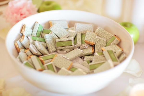 Wedding + Reception Venue: Canyon Gate Country Club / Photographer: Yvonne Wong / Wedding Dress: Calvin Klein / Hair clip: Feather and Frills / Makeup: Corinna Cooke / Floral: DIY (Whole Foods, Cool River Farms) and manzanitas from Blooms and Branches / Cake: by the groom’s mother / Stationery: Bride / LOVE Plates: Wedding Star / Custom Chocolates: American Bridal / Menus: Martha Stewart / Ring Cushion: Anna Whitford