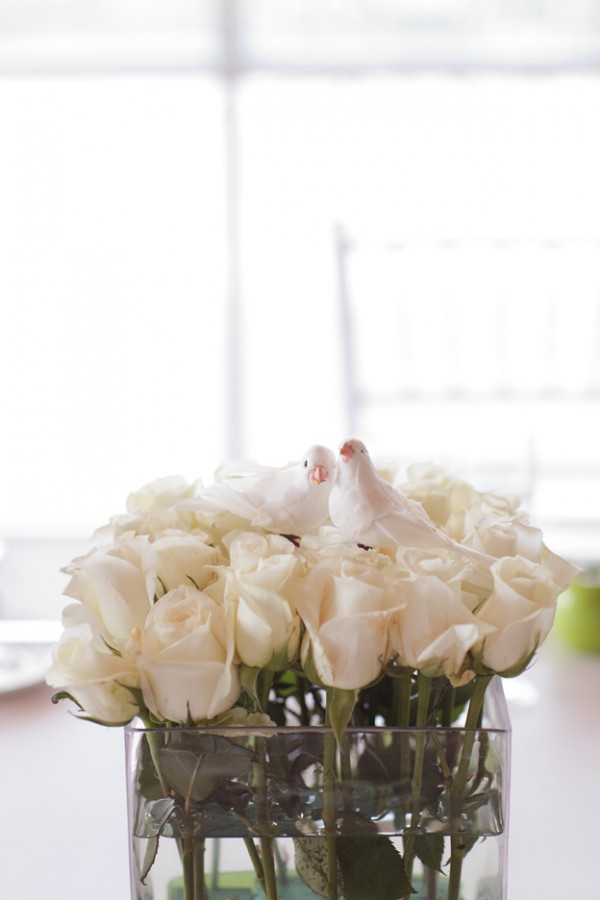 Keeping with white and crisp apple green, the entire wedding has an exceedingly modern, clean look. The contrasting textures of the wheatgrass and manzanita and varied heights make for a gorgeous tablescape, don’t they?