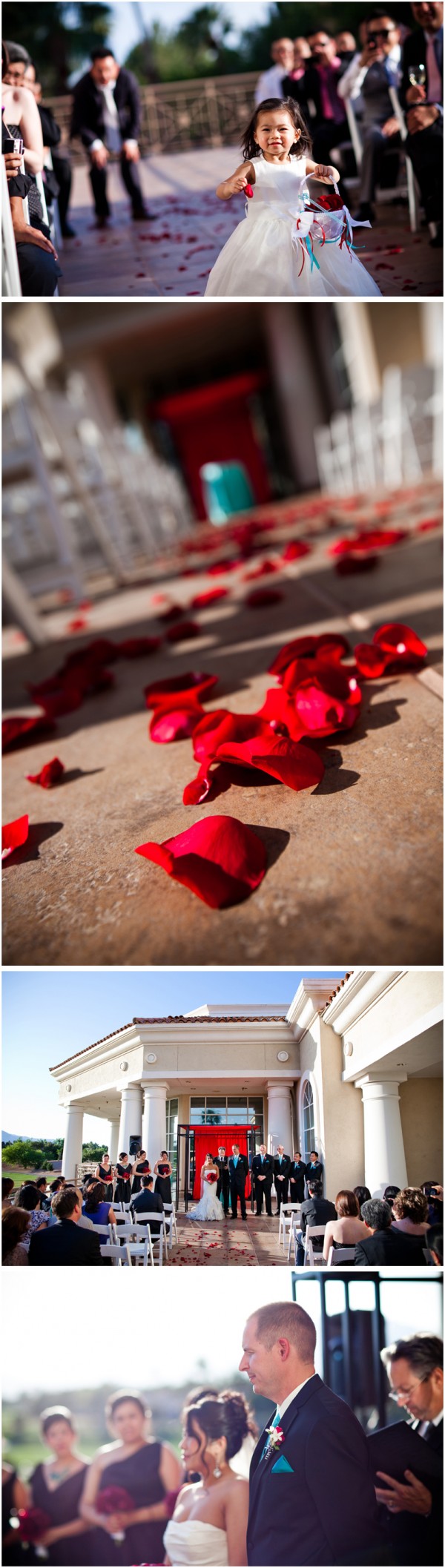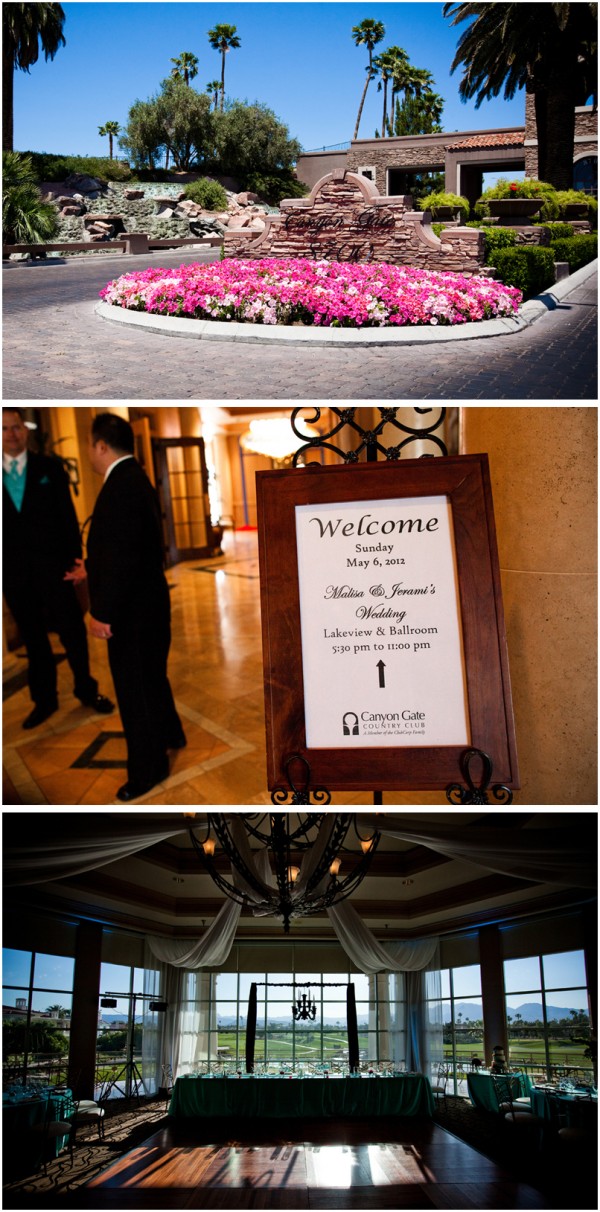 The event took place at Canyon Gate Country Club (outdoors and in the ballroom) in the spring. Malisa decided on Canyon Gate after looking at several other venues on a scouting trip to Vegas. Also in the running? Emerald at Queensridge, Westin Las Vegas, and Angel Park Golf Club. I think one of the most amazing things is that it was mostly a destination wedding, and was planned and executed by the bride and her team of helpers. That’s right – this wedding was not done with the assistance of a planner.