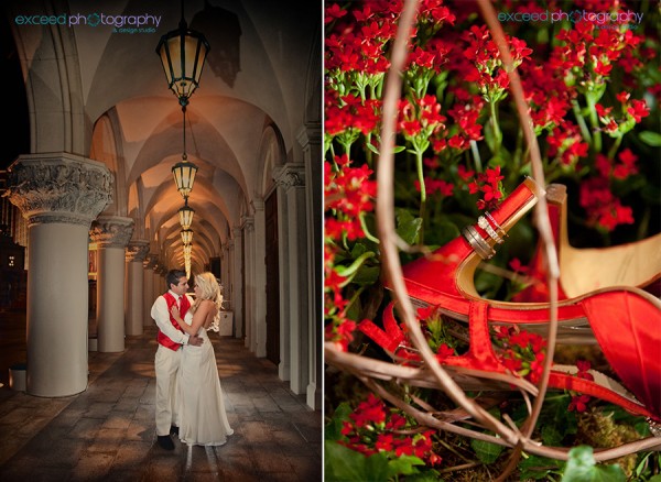 One of the best “freebies” you get with a Vegas wedding is the huge array of photo opportunities. The decor, the lighting, the atmosphere – they are all built into the casino architecture, the decor and neon lights. Also, a 30 minute walk on the Strip can see you hanging out near a pirate ship, on the canals of Venice and by Roman columns, so why not take advantage?