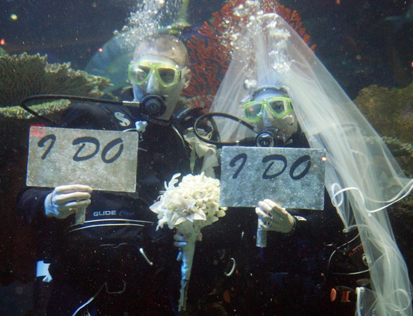 The wedding actually takes place underwater, and can include mermaids in lieu of bridesmaids, if yours prefer not to get wet.