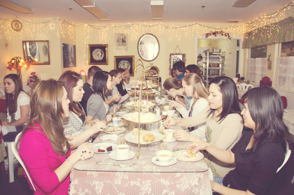 The menu was pre-set and provided by the tea room. Attendees gathered over lace covered tables, sipping tea out of delicate teacups and ate with vintage silverware. Served off of classic tiered trays were classic sandwiches followed by delicious bites of scones and cake, like red velvet and carrot.