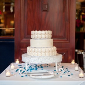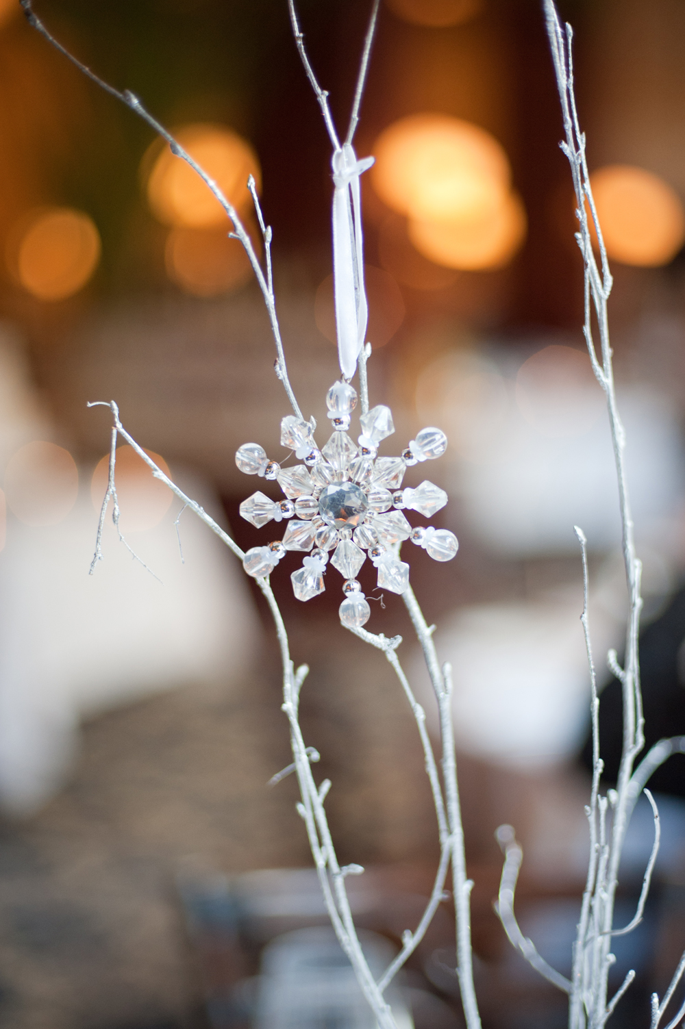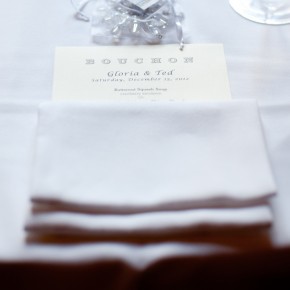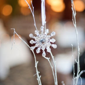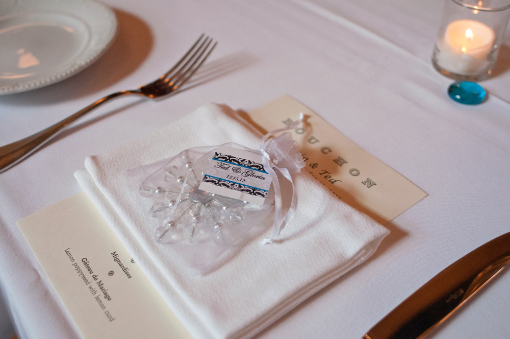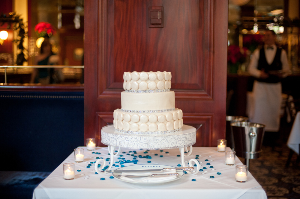 This very French-inspired wedding featuring pops of blue, chic accessories, a macaron-laden cake and of course, the Eiffel Tower, was photographed by the husband and wife team of The Emerics. Because it was a December wedding, there were appropriate colors – silver and blue dominated in the decor and linens, barren branches and snowflake details were featured and the bridesmaids received warm pashmina wraps as gifts.