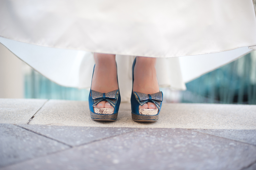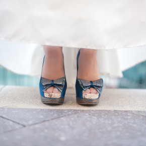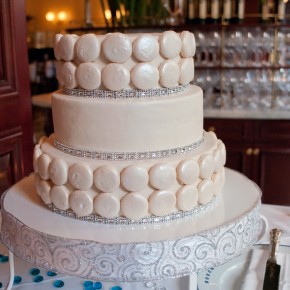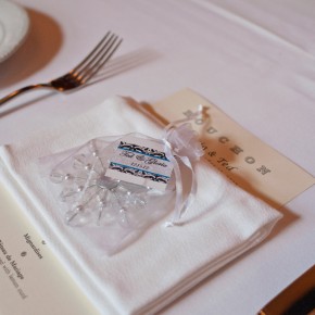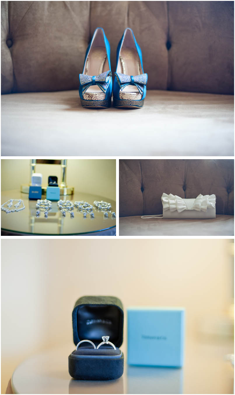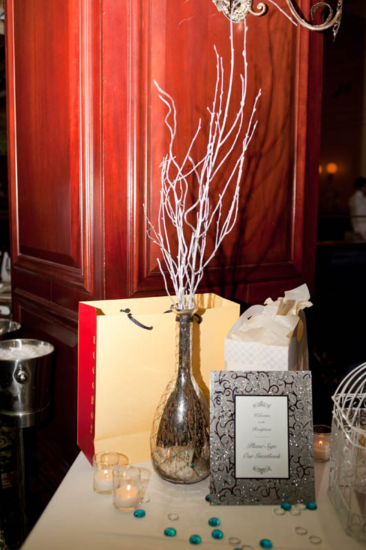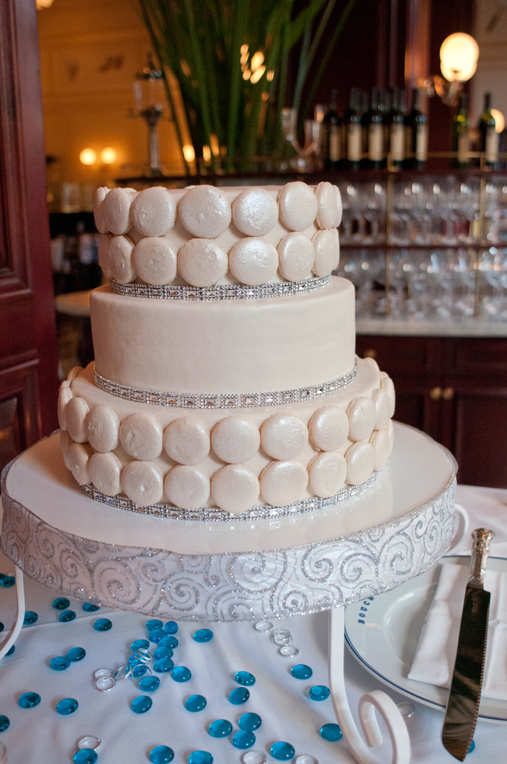 This very French-inspired wedding featuring pops of blue, chic accessories, a macaron-laden cake and of course, the Eiffel Tower, was photographed by the husband and wife team of The Emerics. Because it was a December wedding, there were appropriate colors – silver and blue dominated in the decor and linens, barren branches and snowflake details were featured and the bridesmaids received warm pashmina wraps as gifts.