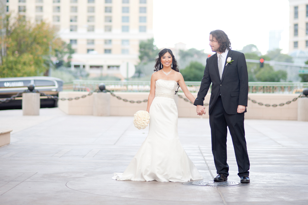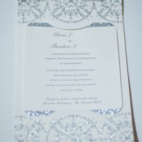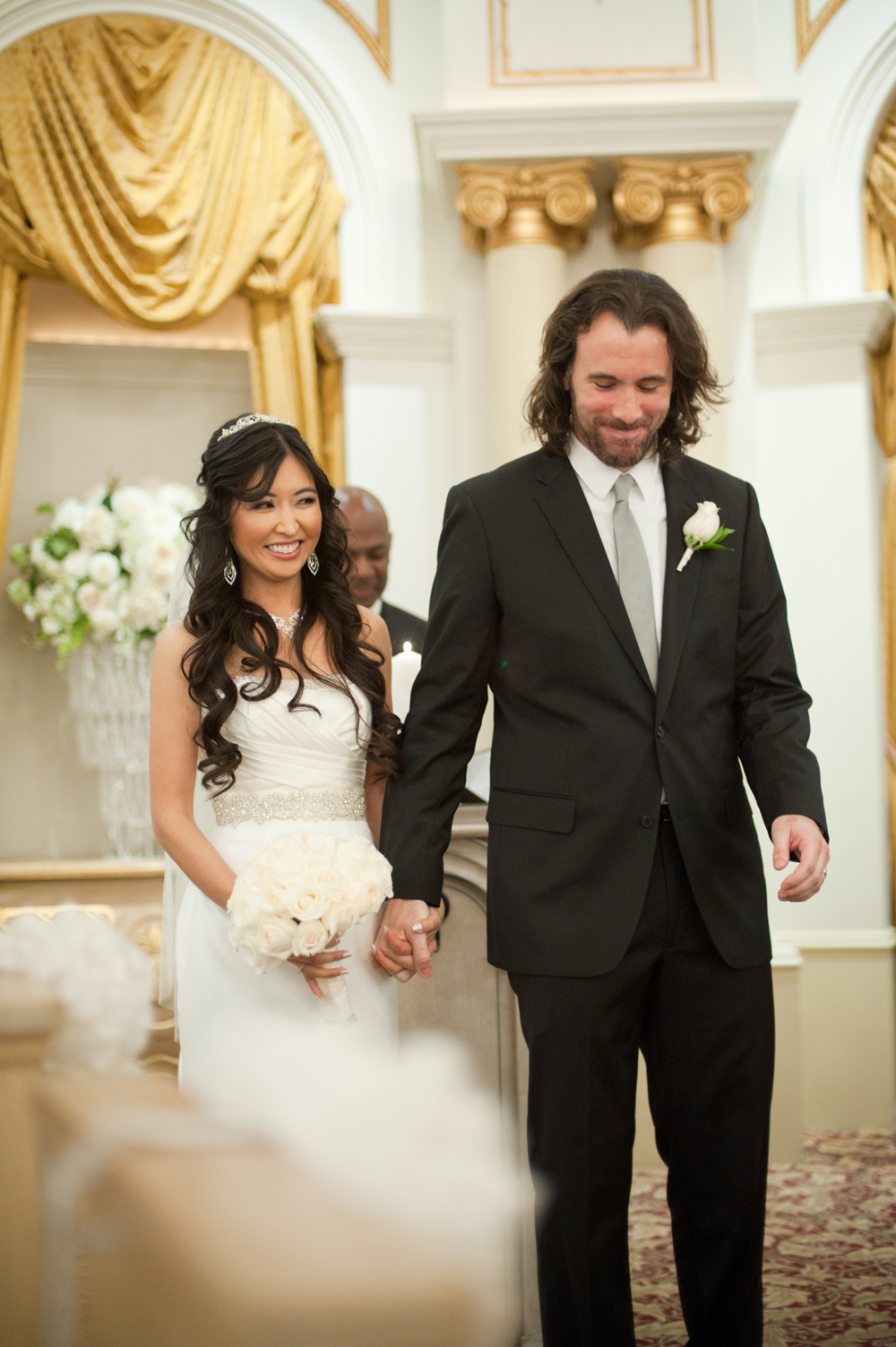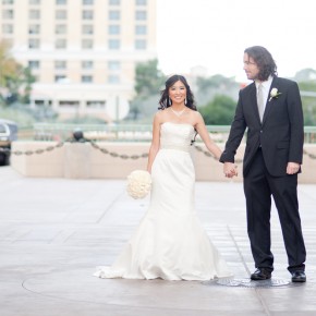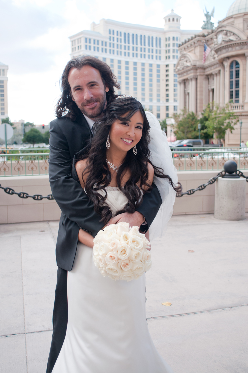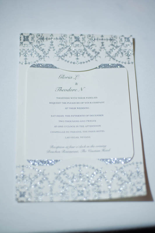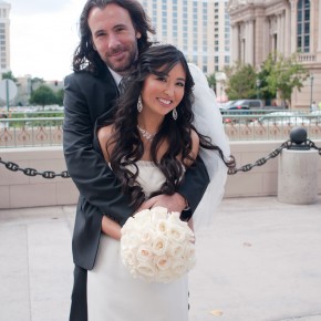 Planning the 70 guest wedding from Florida was easy, said Gloria. It was mostly conducted via email and phone. The staff and service (and food!) at Bouchon were described as “exquisite”, and Gloria’s contact, Heather, at Paris Las Vegas was “amazing” with helping Gloria plan all of the ceremony details in the cathedral-style Chappelle du Paradis.