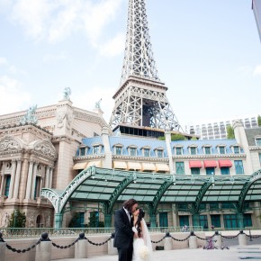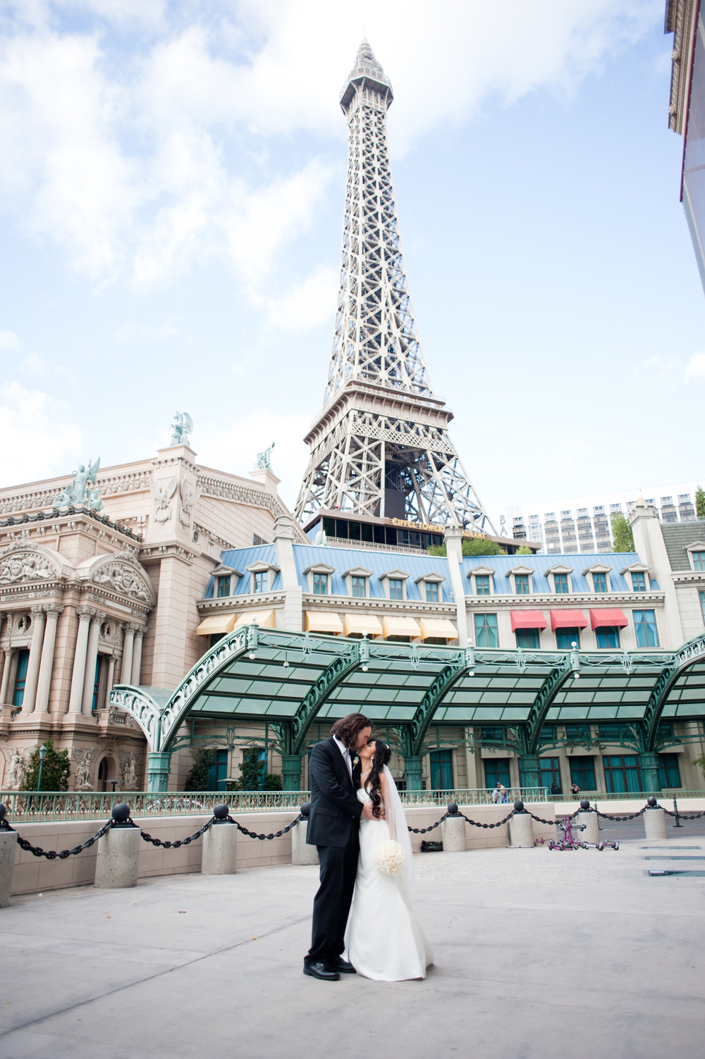 Wedding Venue: Chappelle du Paradis, Paris Las Vegas / Reception Venue: Bouchon Bistro, Venetian Las Vegas / Photographer: The Emerics / Bridal Gown: David’s Bridal / Hair + Makeup: Makeup in the 702 / Catering: Bouchon Las Vegas / Cake: Bouchon Bakery