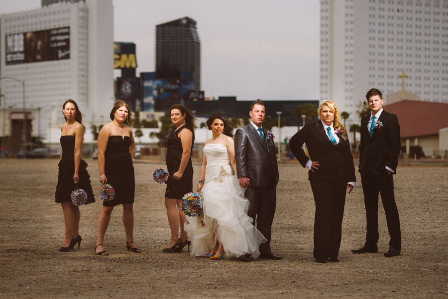 After the ceremony, and before the reception, the wedding party limo’d over to the Welcome to Las Vegas sign and took some atmospheric bridal party shots. What an awesome looking bridal party. Best Woman in a suit? Yes, please! When all the hard posing work was done, it was time for drinks, food and celebration at Firefly Tapas Kitchen and Bar, where the guests drank sangria and mojitos from the open bar while sampling paella, stuffed dates, camarones ajillo and many other Spanish treats.