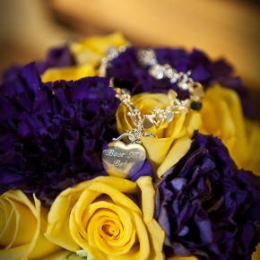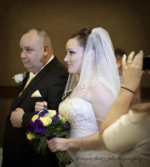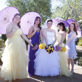 The wedding of Amanda and Ernesto took place over Easter of this year, and fittingly the wedding sported purple and yellow colors, from the flowers to the parasols and bridesmaids gowns to the makeup! These photographs by Lorna Butz Photography show off all the little details of this wedding – which was mostly planned by the bride’s mother!