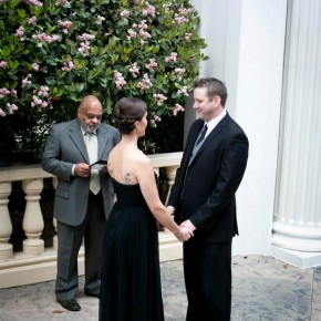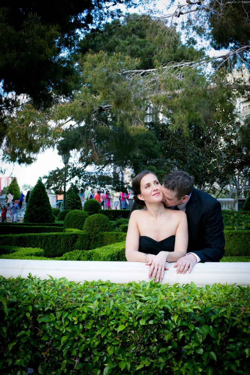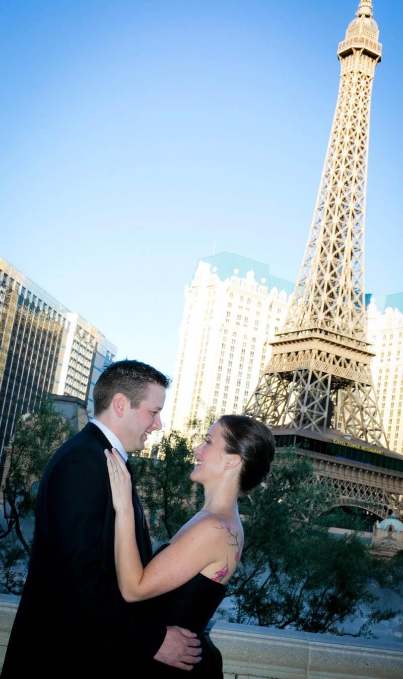 Afterwards, the couple did a mini photo tour of the Strip and got some really beautiful shots. Â In keeping with the simple privacy of this elopement, I’ll keep the wedding chatter to a minimum, and let the photos speak for the love between this couple. (Although – hello, black wedding dress!)