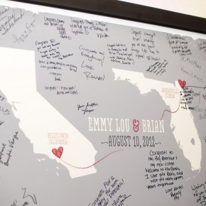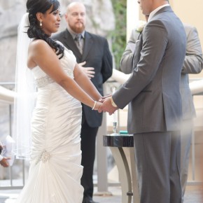 Wedding Venue: Valley of the Falls at Mandalay Bay / Reception Venue: Wellington Place / Photographer: The Emerics / Videography: Moxie Studio / Wedding Dress: Adorea by Soterro and Midgley / Jewelry: Macy’s / Bride’s Shoes: Steve Madden / Veil: USAbride.com / Groom’s Suit: / Groom’s Shoes: / Groomsmen Suits: / Hair + Makeup: Amelia C & Co. /  Floral: Mandalay Bay / Catering: Wellington Place / Cake: Wellington Place / Map Guestbook: Etsy / Stationery {Programs, Fans, Invitations, Stickers}: Gartner Studio at Target, Beau-coup.com
