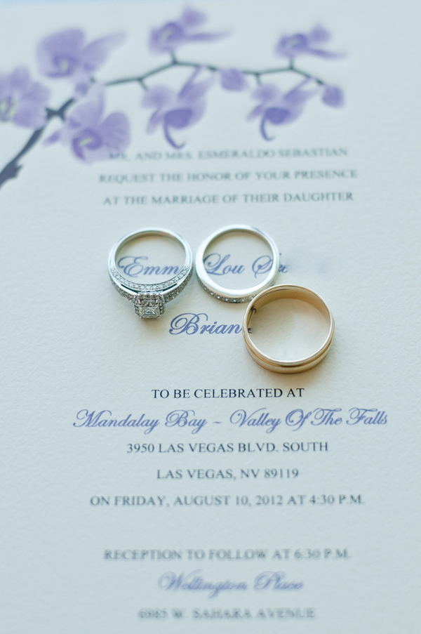 Emmy Lou and Brian were wed at the lovely Valley of the Falls at Mandalay Bay and celebrated after the ceremony at Wellington Place, just off Strip. Their photographers The Emerics and videographers Moxie Studio captured this day full of lilac, white and silver details.