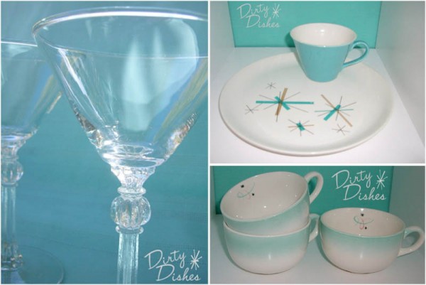 Rents: Â Vintage dishes (from chargers to teacups and everything in between,) glassware and stemware with 1950s/atomic era or retro designs, milk glass, as well as flatware, linens and cake stands