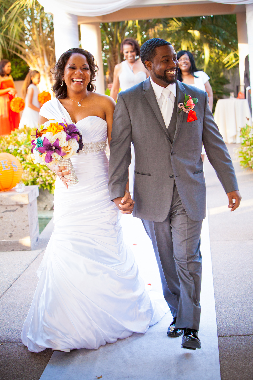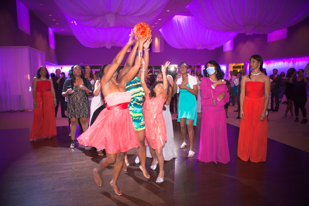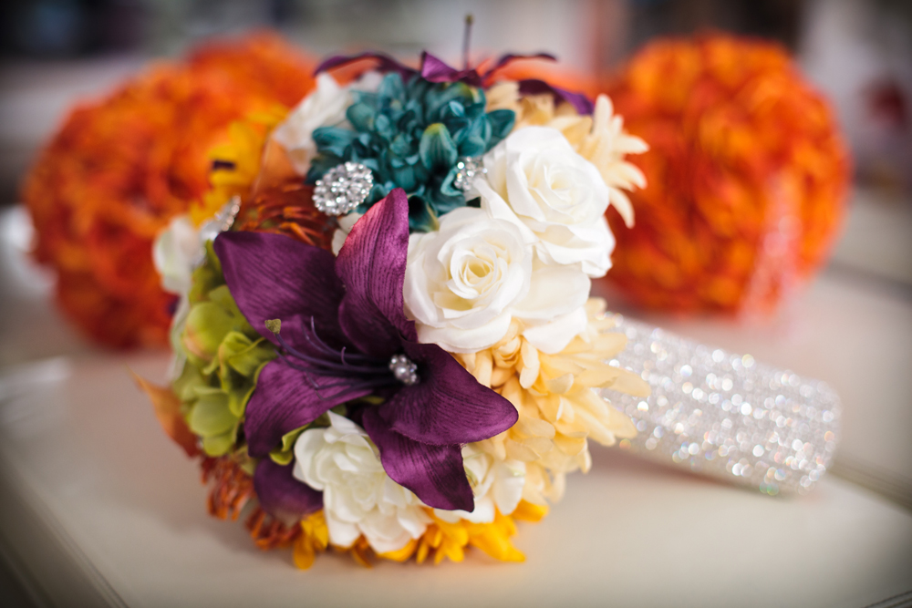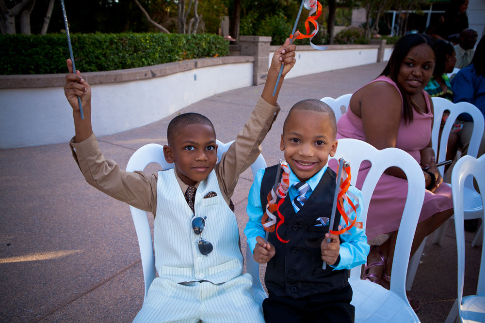 Shameka’s aunt designed the floral bouquets, boutonnieres and pomanders, as well as the wedding wands in those brilliant orange tones. I love the shots of the party later on – Emerald at Queensridge has a custom light setup so that you can change the lighting in the hall and I think it just adds to the awesome reception this wedding had going on.