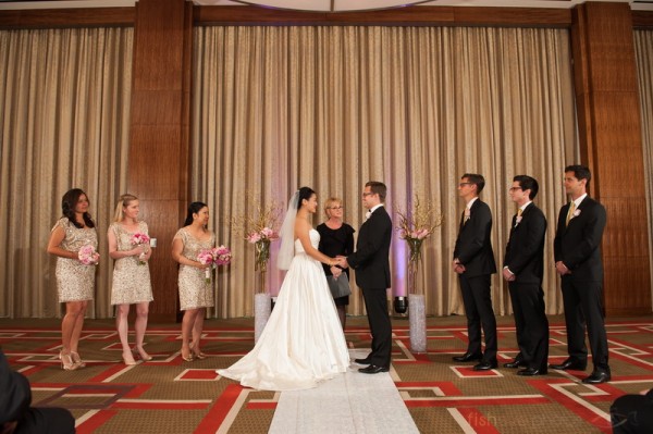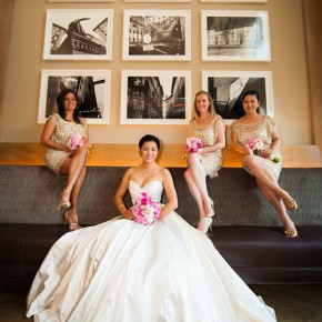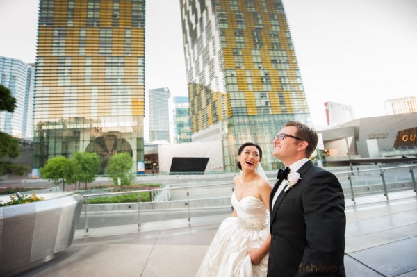Shimmering gold sequined mini dresses for the bridesmaids and the lights glittering through the windows of the ballroom reception remind you that although you are in the calm and serene Mandarin Oriental…this is still Las Vegas! I love the variety of portraits the couple got just by walking a short distance out of the Mandarin, too. I’m a sucker for modern architecture and love CityCenter for its huge array of photo opportunities.