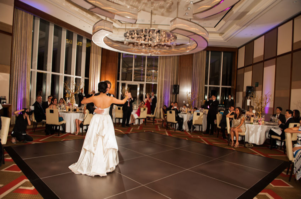 Wedding & Reception Venue: Mandarin Oriental Las Vegas (Ballrooms A and C) / Photographer: Fisheye Photos by Calvin Yao /  Wedding Planner: Jessica Yip at Mandarin Oriental / Wedding Dress: Lazaro / Bride’s Shoes: J Crew / Bridesmaid’s Dresses:  Aidan Mattox from Saks Fifth Avenue / Groom’s Suit: Hugo Boss / Groom’s Glasses: Fendi / Groom’s Velvet Bowtie: Turnbull & Asser /  Hair Design: Morgan Noel / Makeup: Sally Lai, Bride’s Sister /  Floral: Flowers of the Field / Cake: Gianni Santin for Mandarin Oriental / Linens: Mandarin Oriental / Lighting: Flowers of the Field / Entertainment: DJ Rob B (via Flowers of the Field)