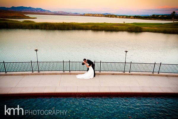 Gorgeous wedding photo taken at Lake Las Vegas by KMH Photography
