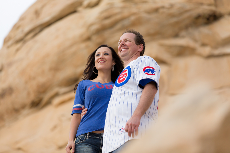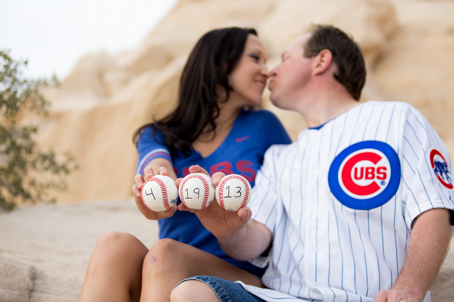 Turns out their engagement session (also photographed by Nancy Easton) was just as full of personal details! For example, their love of baseball. And, just like their wedding, this shoot was full of beautiful desert colors! View the rest of these lovely photos of this cute couple…