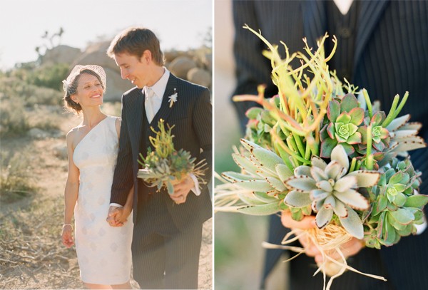 Desert wedding bouquet made of succulents. Photo by Robert Sukrachand