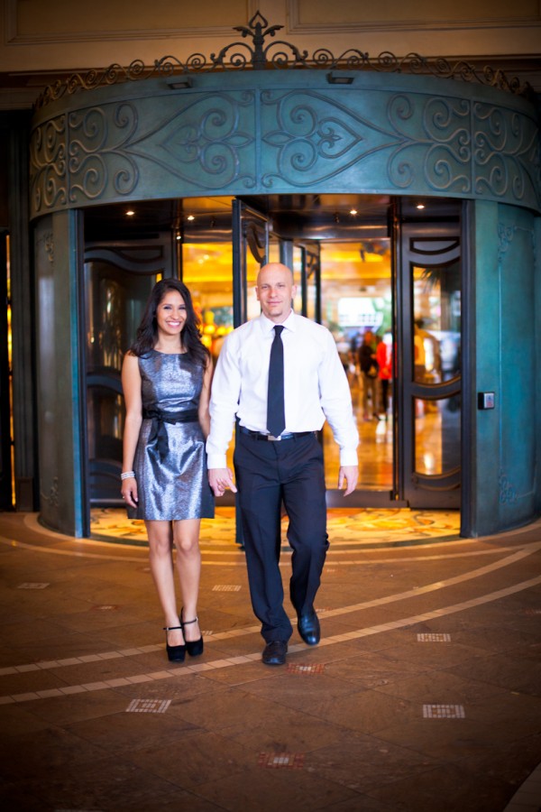Taylored Photo Memories captured Yvette and Orestes, a couple from Texas who traveled to Las Vegas to get their engagement photos done. Well – almost. They paired their engagement session on The Strip with a site tour and the in-person handling of some of the details of of their destination Vegas wedding. A great one-two punch if you are planning a wedding in Vegas from afar and are able to do a scouting trip!