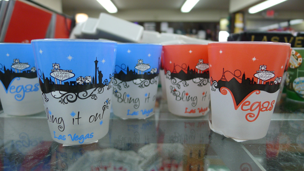 I stopped in a took just a few photos of some of the 1000s of items they have there and got fatigued within about five minutes. T-shirts, beer koozies, mousepads, flip-flops, sunglasses – if it can be printed on, they’ve Vegas’d it up.