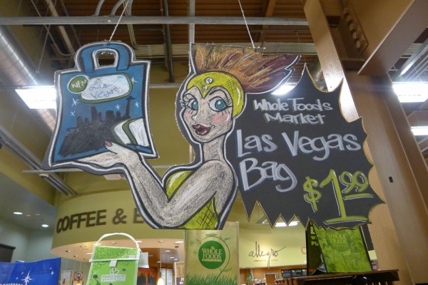 Gifts are only as good as the bag they come in, so why not pick one that is ecologically thoughtful and useful? I bought a reusable Las Vegas themed Whole Foods shopping bag some time ago and love it. It’s gotten comments when I’ve used it in Japan, Thailand, Canada and other parts of the States. (Yes, I bring it EVERYWHERE!) It’s also surprisingly sturdy and pretty affordable at $1.99.