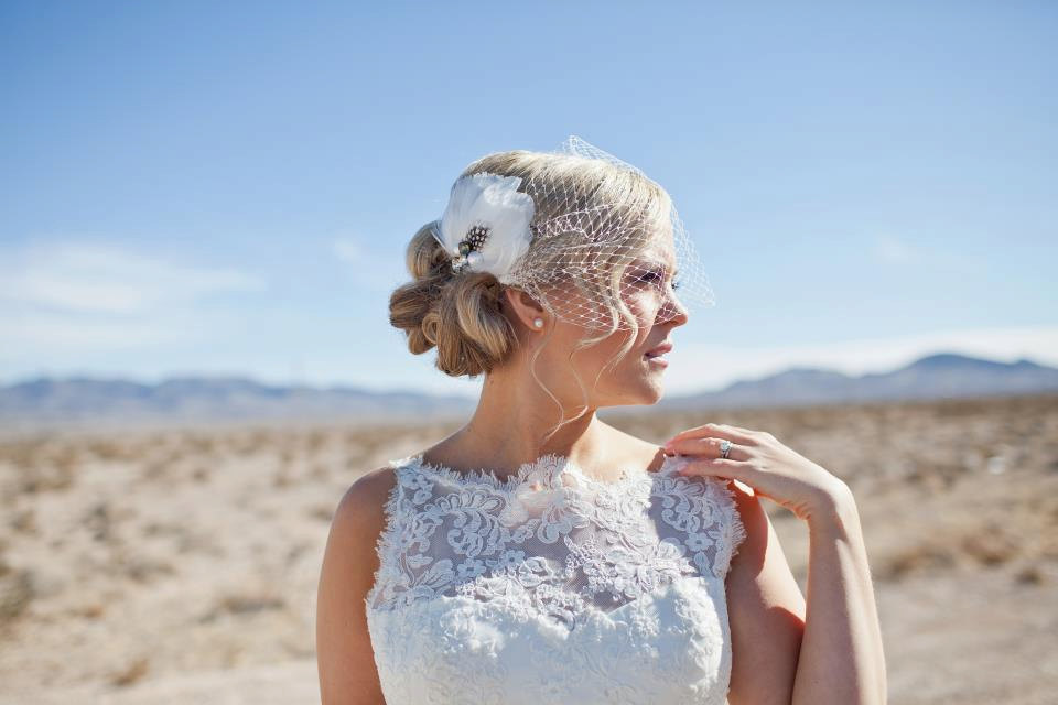 Pomp & Plumage’s beautiful birdcage veil. Photo by Vegas’s own Meg Ruth Photography!
