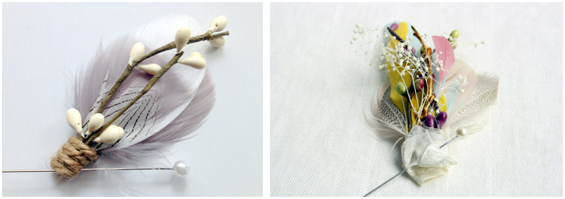 I love this boutonniere: http://www.etsy.com/listing/152279082/august-feather-boutonniere-in-persimmon?ref=shop_home_active