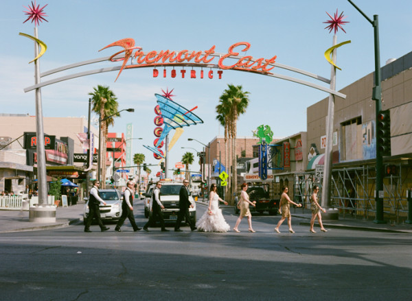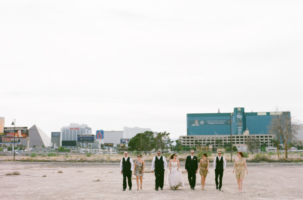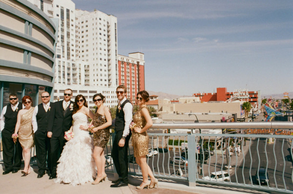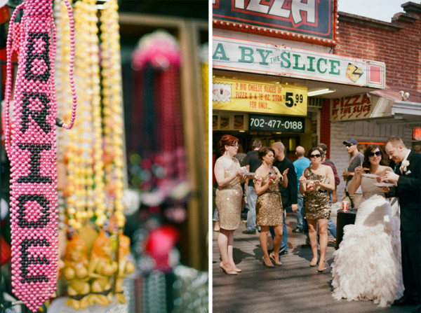 Chelsea and Mike came from North Dakota for their destination Las Vegas wedding. Following a simple ceremony (not pictured) way at one end of The Strip at Little Church of the West, the bride and groom got some fun photos with their bridal party at locations in and around downtown Las Vegas and Fremont. I’m digging the addition of the atmospheric shots of the signage and downtown hotels…and their pizza and drink break mid-shoot!