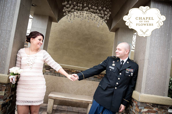 Bethany, the bride writes: “We chose to get married in Vegas because not only we are a very non-traditional couple (my engagement ring is a blue topaz with pink sapphires for example) who weren’t really interested in doing the big church wedding, we also wanted it to be just the two of us. The other challenge we faced was our schedules, I’m currently in nursing school and my husband is active duty Army reserve. When we sat down and compared calendars it turned out we had one week in May where we had no other obligations, we knew we wanted to do our wedding/honeymoon all at once and what better place than Las Vegas!”