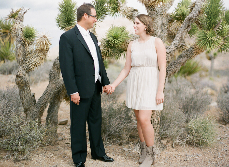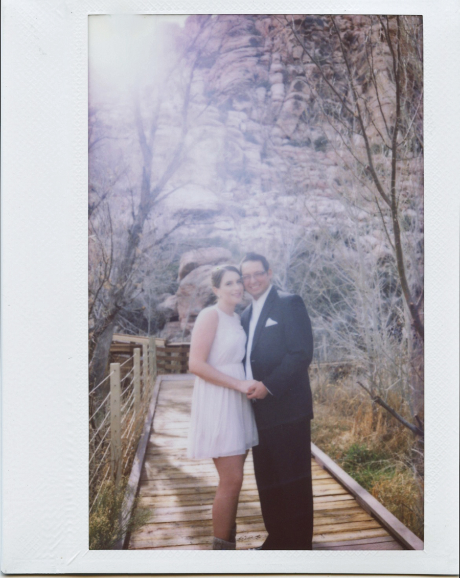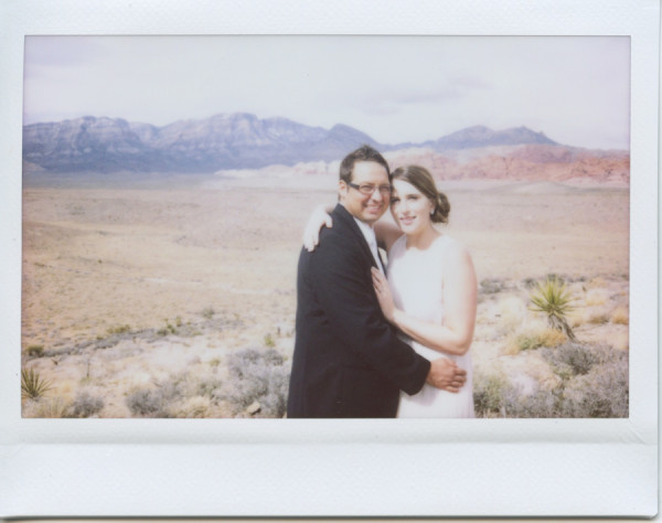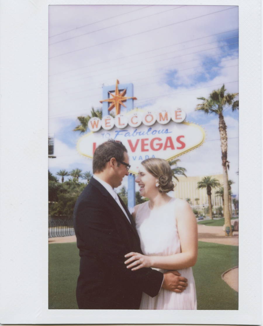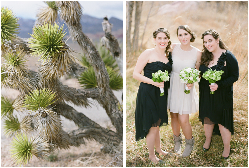 Pre-ceremony, the bridal party did a little portrait shoot with stops at the Welcome to Fabulous Las Vegas sign and some romping in the desert. Ruth shows off the perfect reason to wear two dresses on your wedding day. And aren’t her boots great?