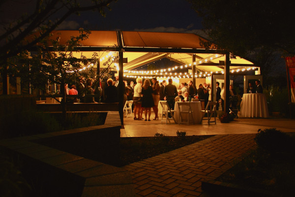 After their Gardens Arboretum sunset ceremony, Ruth and David chose to use the Frame House for a cocktail hour lit by warm cafe light strings overhead. Then guests headed to the reception, held in the window filled Gardens Terrace.